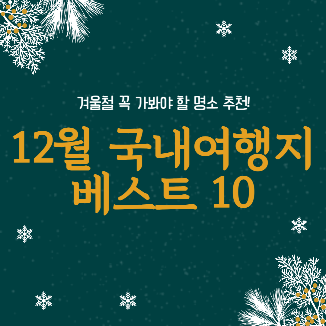 이번 블로그에서는 12월 국내여행지 베스트 10을 소개하며, 겨울철에 가볼 만한 여행 정보를 제공하겠습니다.
