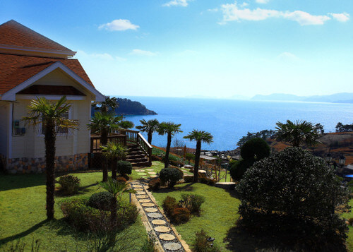 네 번째 남해 가성비 좋은 숙소는 오션뷰와 스파, 다양한 편의 시설로 힐링 여행에 적합한 남해 스파 힐 펜션입니다.