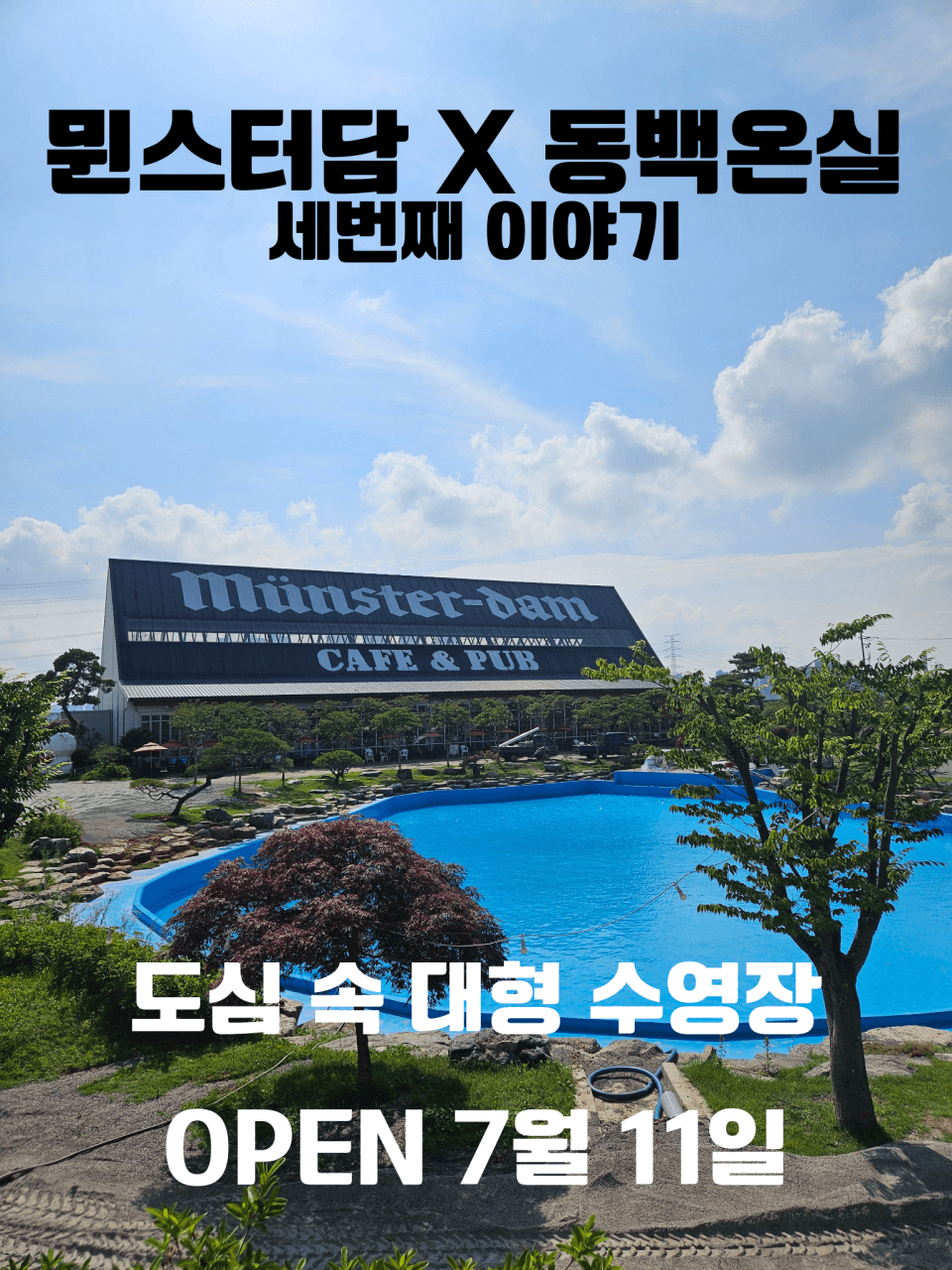 뮌스터담 수영장은 파주 대표 대형카페 뮌스터담과 동백 온실이 협업해 운영하는 대형 야외 수영장입니다.