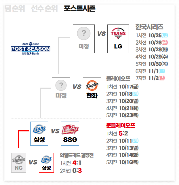 - 포스트시즌 개막: 2025년 10월 5일(일)