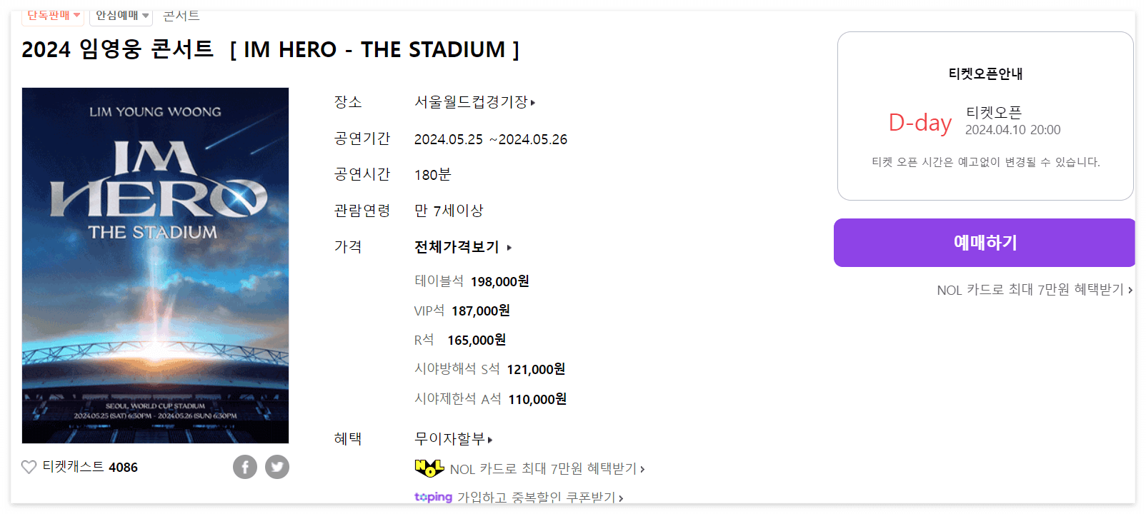 4/10 저녁 8시 티켓 오픈 예정이니 미리 알람 맞춰두시고 예매 준비하시는 것을 권장 드립니다.